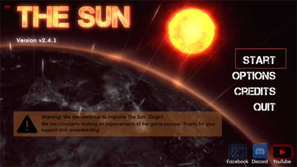2、点击主界面的START按钮,进入游戏的剧情流程,开启这场基于太阳灾难背景的生存挑战。