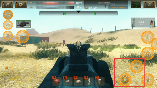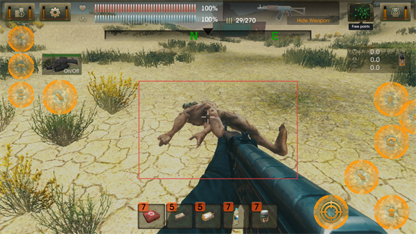 2、锁定荒漠中出现的变异怪物,操控武器瞄准其位置,点击射击按钮发起攻击。