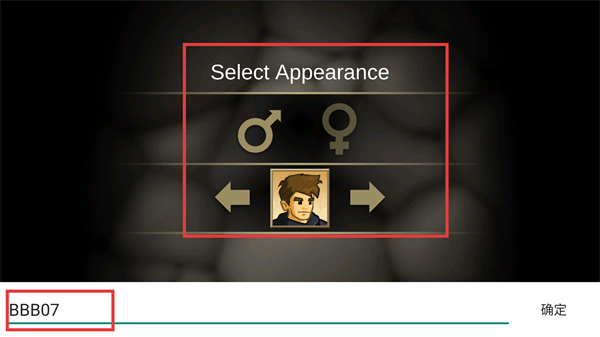 1、点击性别图标选择角色性别,再通过左右箭头切换外观样式,设置好后输入BBB07作为名称,完成角色创建准备。