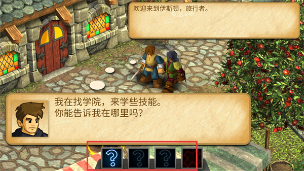 3、点下方的问号按钮选择对话选项,向NPC询问学院位置,获取相关信息,为后续学习技能做铺垫。