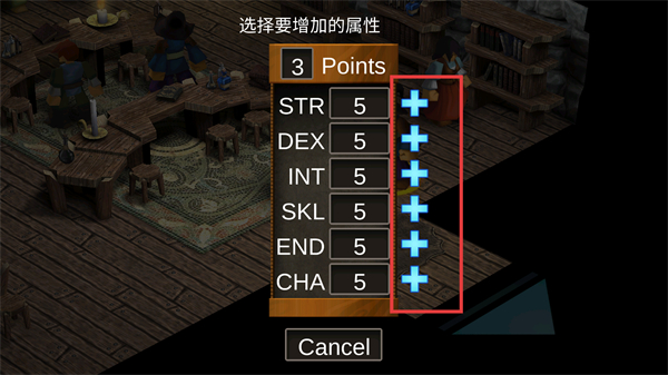4、点击属性右侧的加号按钮,分配技能点提升对应属性,强化角色能力,优化后续战斗与冒险的基础面板。