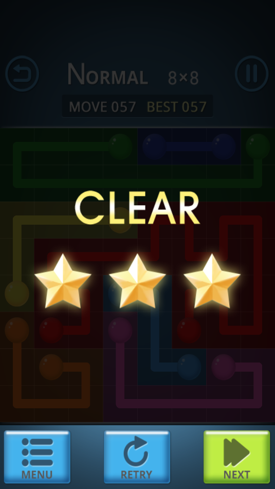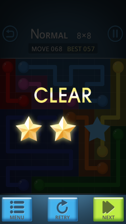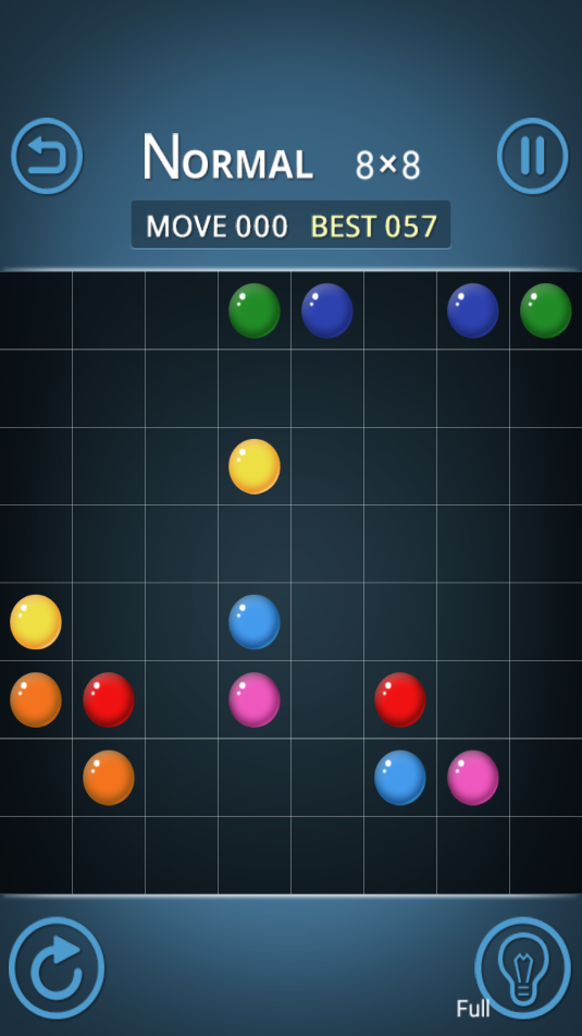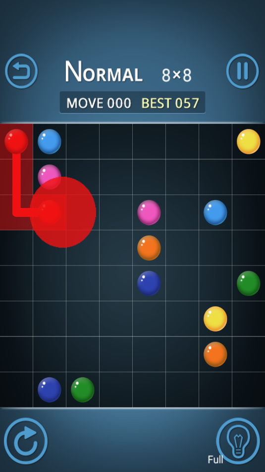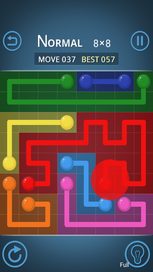 3、游戏是点击滑动一个小球连接在另一个同颜色的小球,连接全部小球即可通关,画面格子中且不能出现空位。