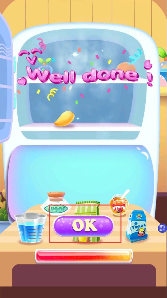 4、当蛋糕制作完成后,会出现Well done的提示,点击OK按钮,确认制作成功,可继续制作新的蛋糕。