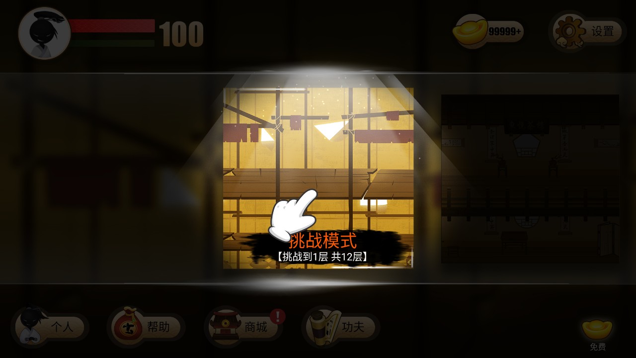 1、进入游戏,点击开始游戏按钮,开启火柴人武术对决之旅,准备施展功夫招式。
