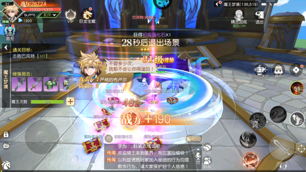 1、魔王深渊挑战:独创怒气值机制,个人归属奖励模式,考验输出时机把控与战力策略。