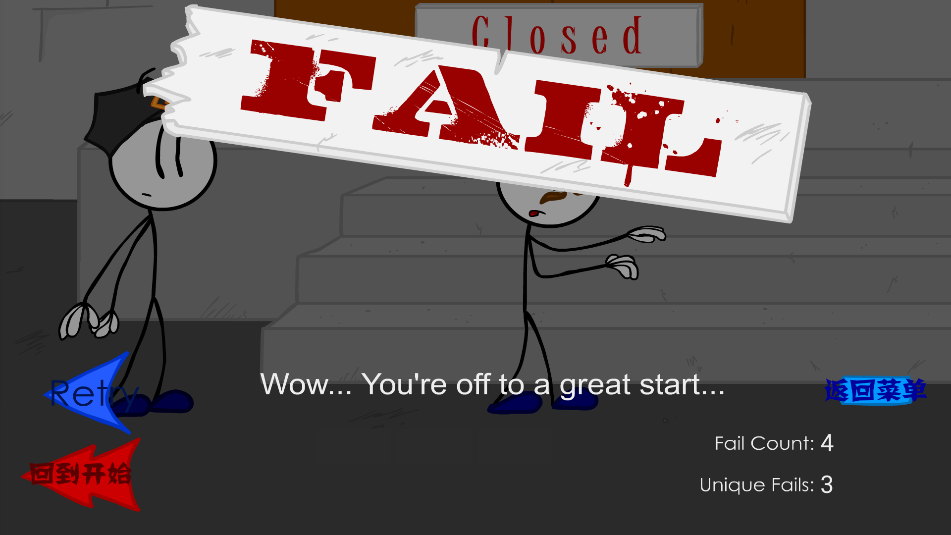 1、采用简约火柴人画风,搭配诙谐夸张的动作与失败场景,将紧张的盗窃过程与休闲搞笑氛围结合。