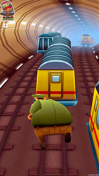 2、点击屏幕控制角色沿赛道自动奔跑,通过滑动屏幕实现跳跃、下蹲、左右变道,躲避障碍物与陷阱,收集金币、磁铁、护盾等道具提升得分。