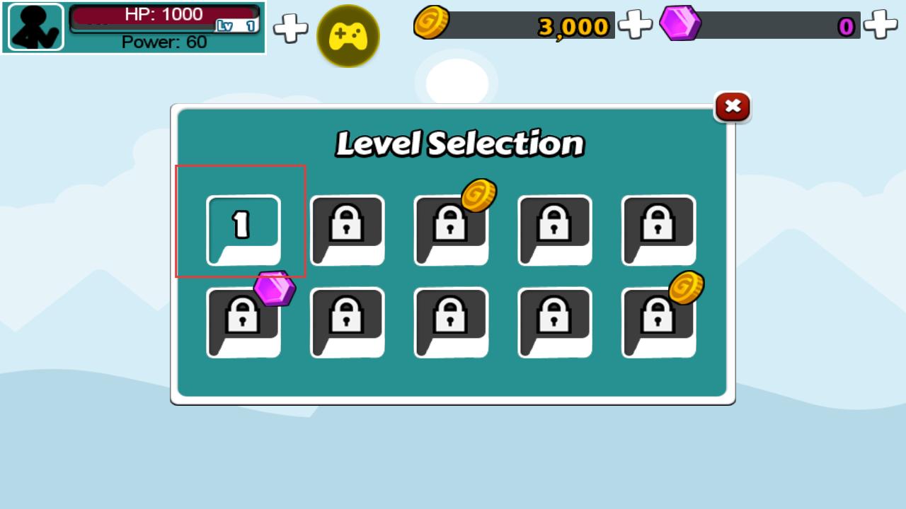 2、进入关卡选择界面,选择关卡1开始挑战,从第一关起步,逐步解锁后续关卡,体验闯关乐趣。