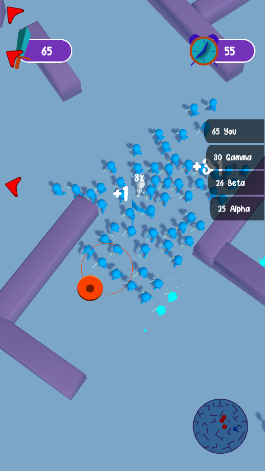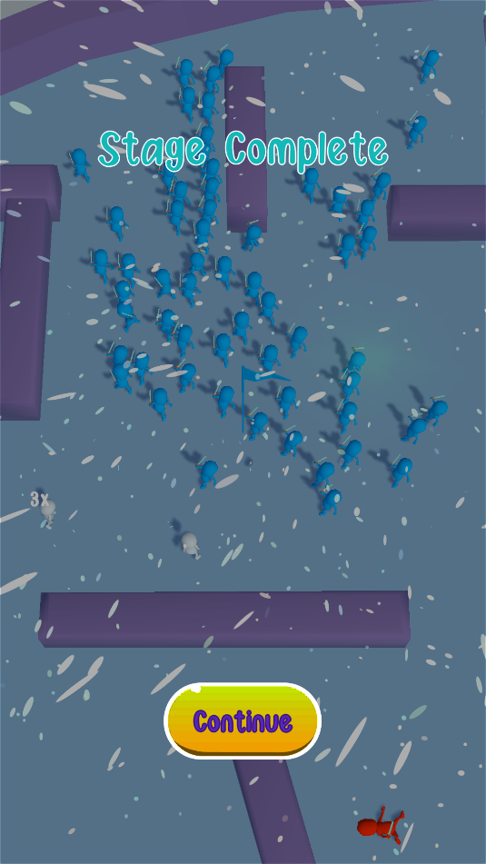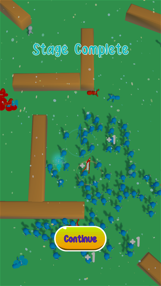 2、游戏里,点击滑动屏幕控制小蓝人移动,吃掉白色小人,变为友军,壮大队伍。