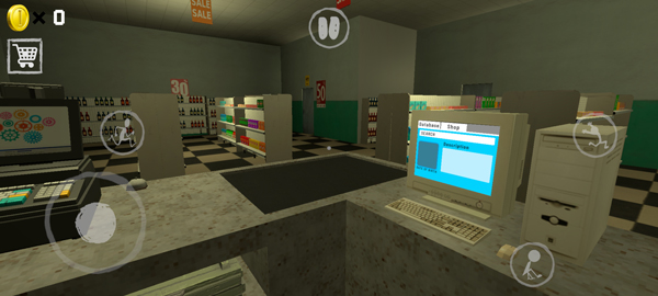 3、拾取场景中的金币,前往指定界面用金币购买道具,借助道具应对危机,确保能平稳在超市度过黑夜。