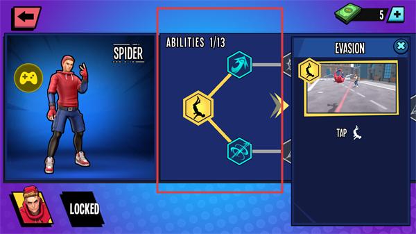 1、进入能力界面,可解锁不同技能节点,提升角色格斗能力,为后续战斗与探索提供技能支持,推进超级英雄的成长进程。