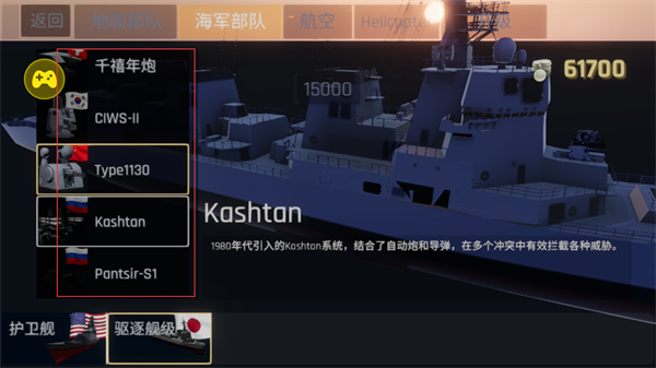 2、切换至海军部队板块,可解锁Kashtan等武器系统,Kashtan系统结合自动炮和导弹,还有千禧年炮等多款海军近防系统,消耗资源解锁,强化海军防御体系。