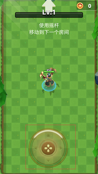 4、操作摇杆控制角色移动,让角色移动到下一个房间,推进关卡进程,继续后续的冒险内容。