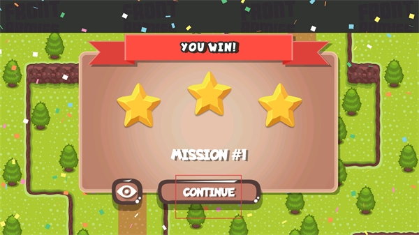 4、在YOU WIN界面点击CONTINUE按钮,结束当前任务的结算流程,进入后续的游戏环节。