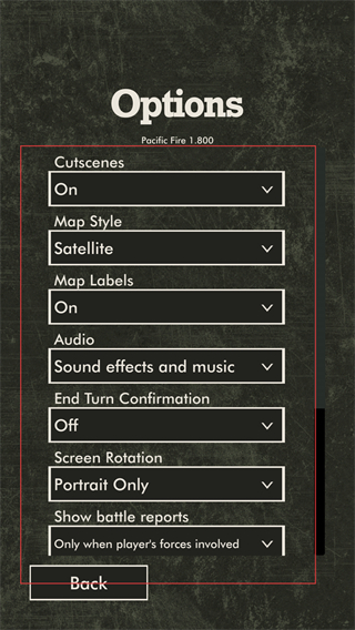 1、在Options界面调整各项设置,比如Cutscenes状态等,完成后点击Back返回主界面。