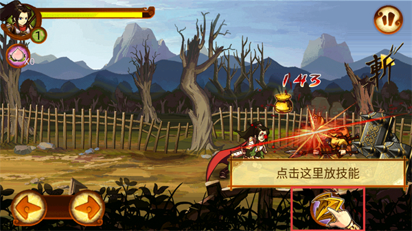 4、点击界面提示的技能区域,释放武将技能,对敌人造成范围伤害,提升战斗效率加快关卡进程。