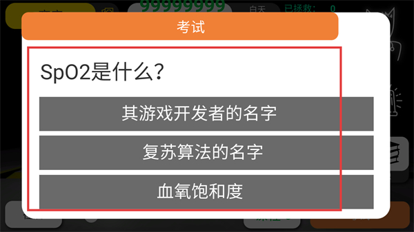 2、在考试界面查看SpO2是什么的题目,从选项里选择对应的正确答案,完成这道题的作答。