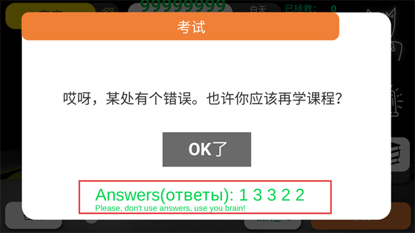 3、若答题错误会弹出提示界面,点击OK了关闭提示,可选择再学课程后重新参与考试。