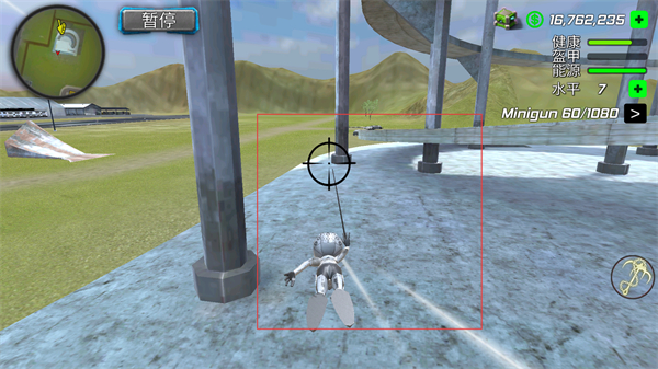 2、点击右侧绳索按钮,角色射出绳索并移动到坦克附近的区域,靠近坦克。