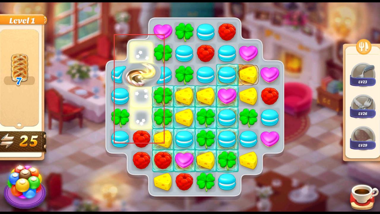 1、基础三消采用经典配对机制,但加入了食材主题的特殊方块,完成特定组合可触发厨具加成效果,在限定步数内获取额外装饰币。