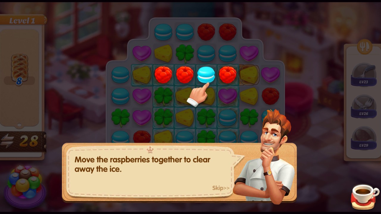 1、创新融合三消玩法与餐厅经营机制,每完成消除挑战可获得装修基金,实现游戏资源与经营要素的循环互补系统。两种模式的巧妙结合带来层次丰富的体验。
