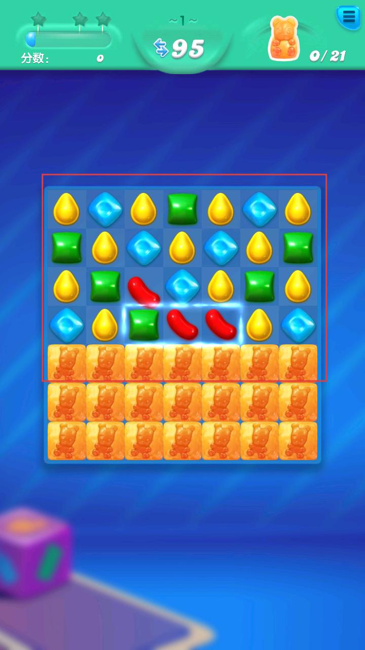 2、在关卡中通过交换相邻糖果的位置,让相同颜色的糖果连成一线,触发消除效果,推进关卡进度。