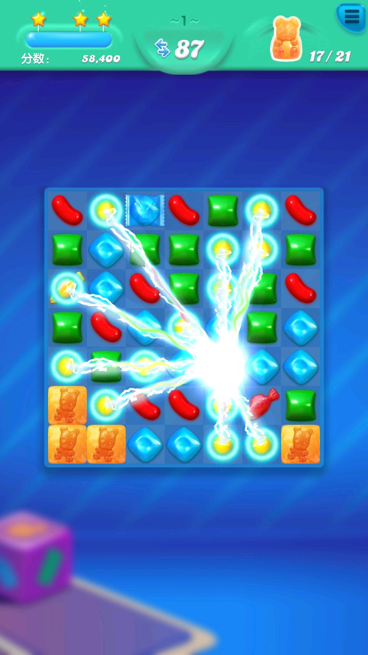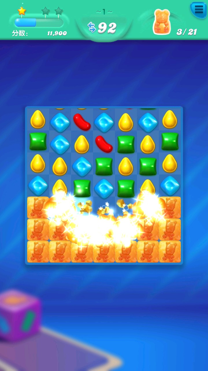 1、动态色彩管理系统使糖果呈现晶莹剔透的质感,搭配气泡升腾与爆破特效,营造生动活泼的视觉反馈。每个关卡都有专属背景动画增强场景氛围。