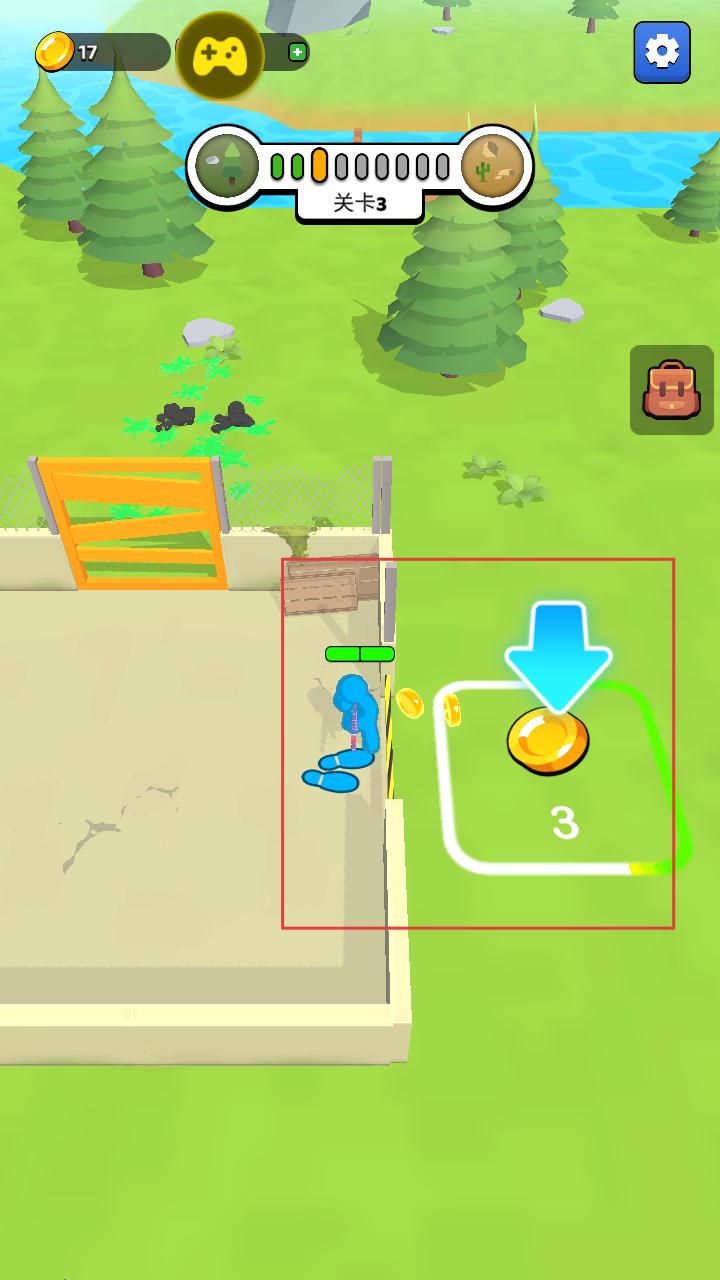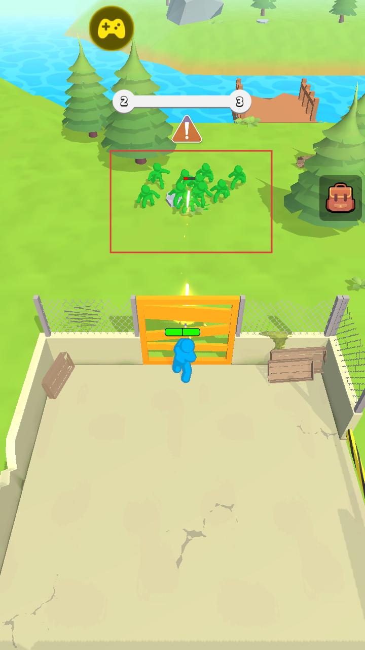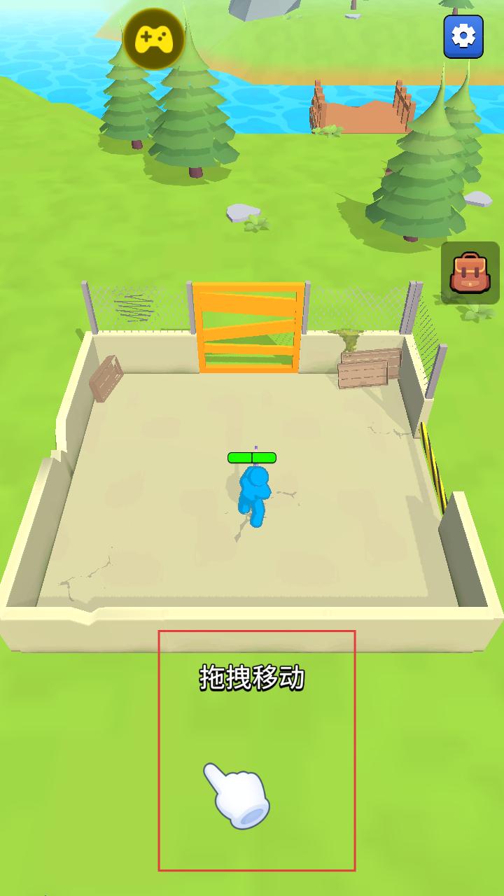 1、进入游戏可通过拖拽操作移动蓝色角色,在围栏区域内自由活动,熟悉操作后开启末日生存之旅,准备应对各类危机与挑战。