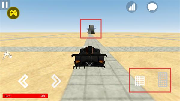 3、驾驶改装车辆在沙漠地图的道路上行驶,朝着前方建筑前进,利用界面控制按钮操作车辆,展开探索之旅。