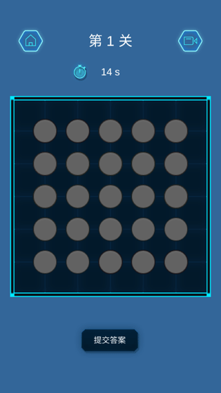《摸黑校位》是一款考验记忆力与空间思维能力的益智手游版本为v2.0.1无需联网即可畅玩开放数百个免费关卡5x5方格中分布5种颜色共25个彩球开局限时观察记忆彩球排列点击开始作答后所有彩球颜色消失需通过滑动操作某一行或某一列移动凭记忆盲推盘面使每行彩球颜色相同每次点击同一关卡彩球排列顺序都会变化设有三次提交答案机会三次均错误则通关失败自动保存进度方便随时继续挑战界面简洁操作简单难度随关卡逐步提升适合锻炼大脑思维。