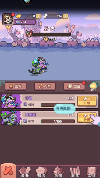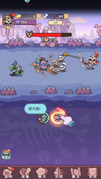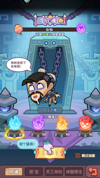 4、搞怪画风融合暗黑元素,Q版武将造型鲜活,色彩饱满却无审美疲劳,氛围轻松解压。
