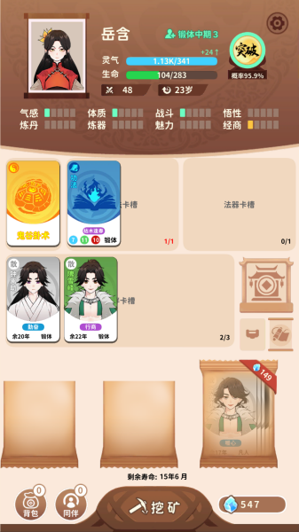 4. 日常任务稳收益,挖矿、讨伐等任务获取灵石与突破丹,保障资源稳定积累。