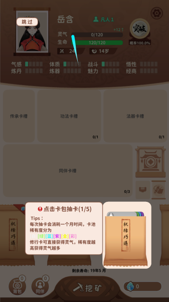 《卡包修仙》是一款卡牌肉鸽修仙模拟手游,以卡牌构筑为核心开启修真之路。玩家抽取功法、法宝、灵兽等卡牌打造专属流派,在随机事件与境界突破中体验独特修行。融合卡组策略与修仙养成,从炼气到渡劫,每次抉择定修行方向,轮回机制让每局新鲜感拉满,书写专属修仙传奇。
