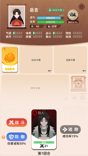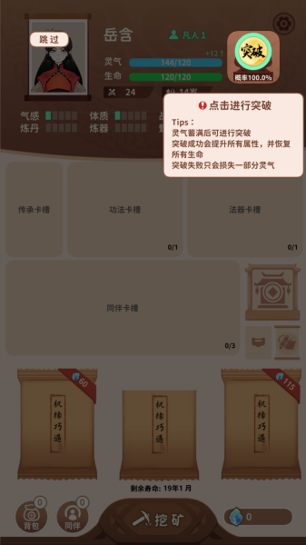 3. 阶梯式境界突破,含炼气至地仙等经典境界,突破条件明确,解锁新内容提升探索欲。