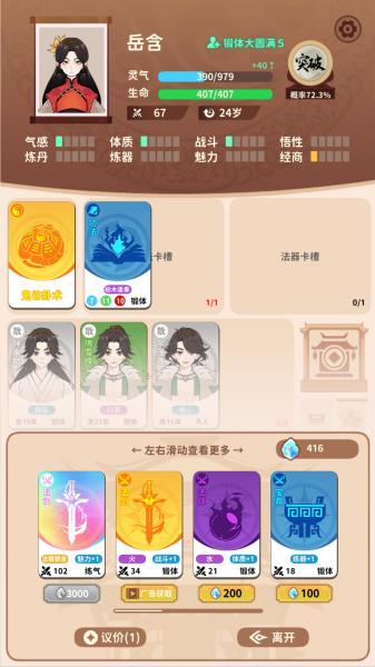 5. 多维属性养成,气感、魅力等六类属性各有作用,适配不同发展策略,提升养成深度。