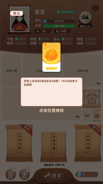 2. 初期卡组精简,仅留1-2张核心功法,优先开广告包拿保底金卡,提升开局战力。